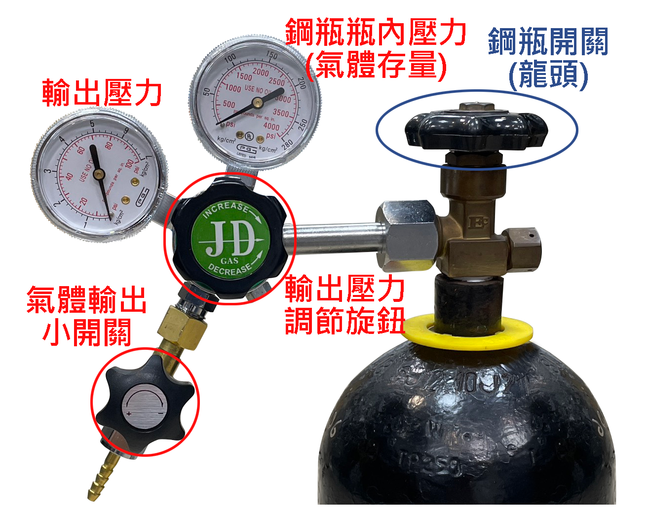 標準氣體新瓶壓力:約 100 kg/cm²